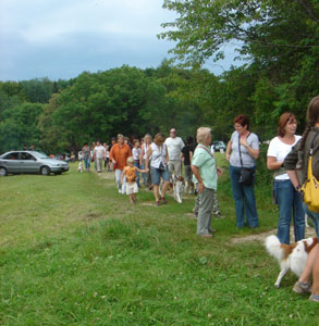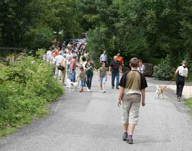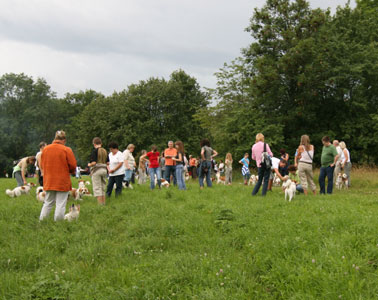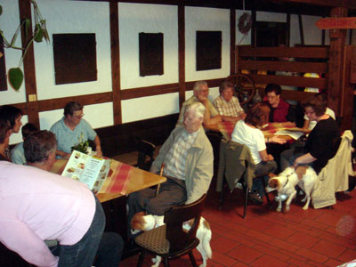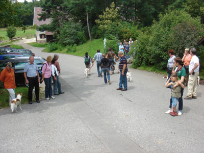 Bei angenehmen Temperaturen trafen sich diesmal 118 Personen mit ihren 45 Kromis und etliche Familien die sich für die Hunde interessierten am Gasthof Übersberg. Während wir noch bei Sonnenschein im Garten unser Mittagessen einnehmen konnten, wurde unser Spaziergang doch deutlich abgekürzt durch das aufziehende Gewitter. Alle wurden nass und fanden, dank der guten Organisation unserer Wirtsleute, einen Platz im Lokal, während andere Gäste warten mussten bis wir alle im Lokal waren. An dieser Stelle möchten wir uns bei den Wirtsleuten bedanken für die Geduld die sie mit uns und unserer Hundemeute bei all unseren Treffen hatten. Leider schließt das Lokal zum Jahresende und wir wissen noch nicht ob es einen Nachpächter geben wird und ob uns dieser aufnehmen wird. Deshalb sind wir momentan auf der Suche nach einer geeigneten Bleibe für weitere Treffen.