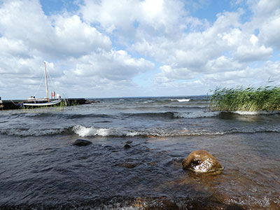 Am 13. Juni geht es weiter, über die E04 bis Jönköping am Vätternsee. Über die "195" entlang des Sees, vorbei an Karlsborg und dem Götakanal (leider nicht angehalten). Wir folgen der "202" bis Undenäs, von dort erreichen wir am Nachmittag über eine Nebenstraße unser nächstes Ziel, Camping Tiveden. Ein schöner, ebener Platz, windgeschützt, direkt am See "Unden" gelegen. Hier bleiben wir einige Tage. Ein guter Ausgangspunkt um den Nationalpark Tiveden zu besuchen und um mit unseren Hunden ausgiebige Spaziergänge zu machen. Auf dem Weg hierher haben wir unseren ersten Elch gesehen. Das Thermometer zeigt 22 Grad.